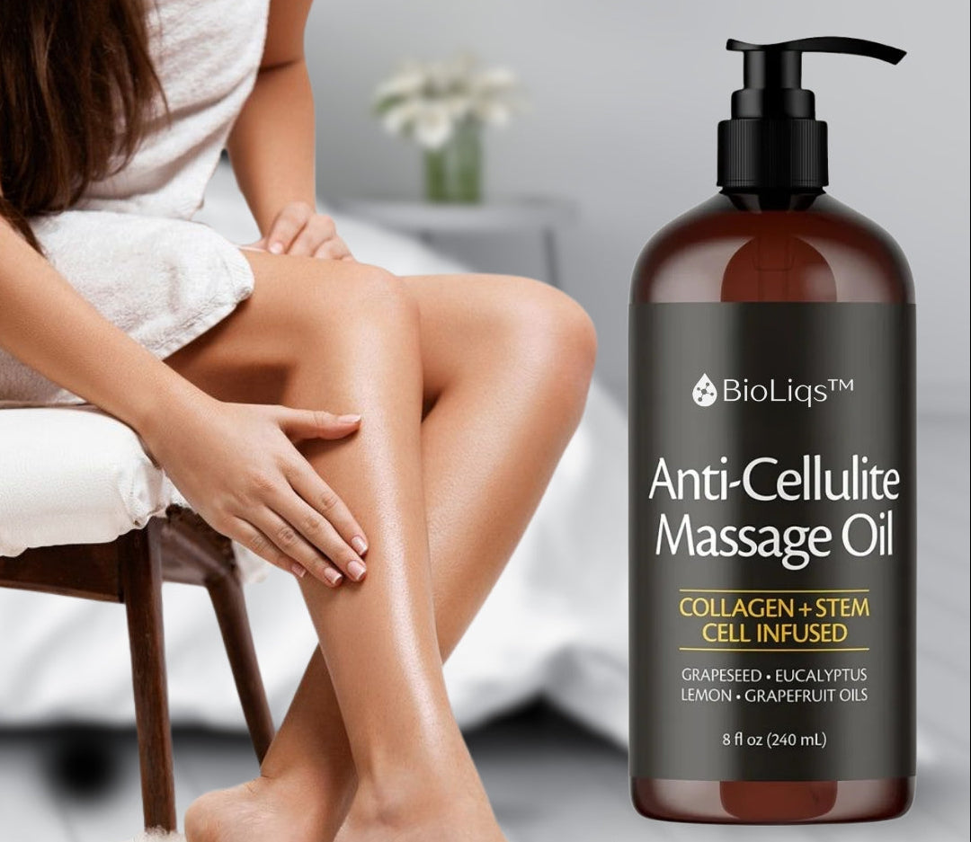 Dispense a small amount of Anti-Cellulite Massage Oil into your palm. - Apply: